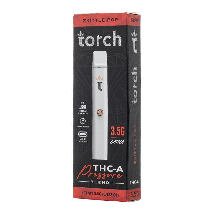 FlavorsArctic Gas +$1.00Black Cherry Gelato +$3.00Blueberry Jam +$1.00Mango Orange RuntzPineapple PowerhousePink GuavaZkittle Pop +$1.00Torch THC-A Pressure Blend Disposable 3.5G$25.00Add to cart
